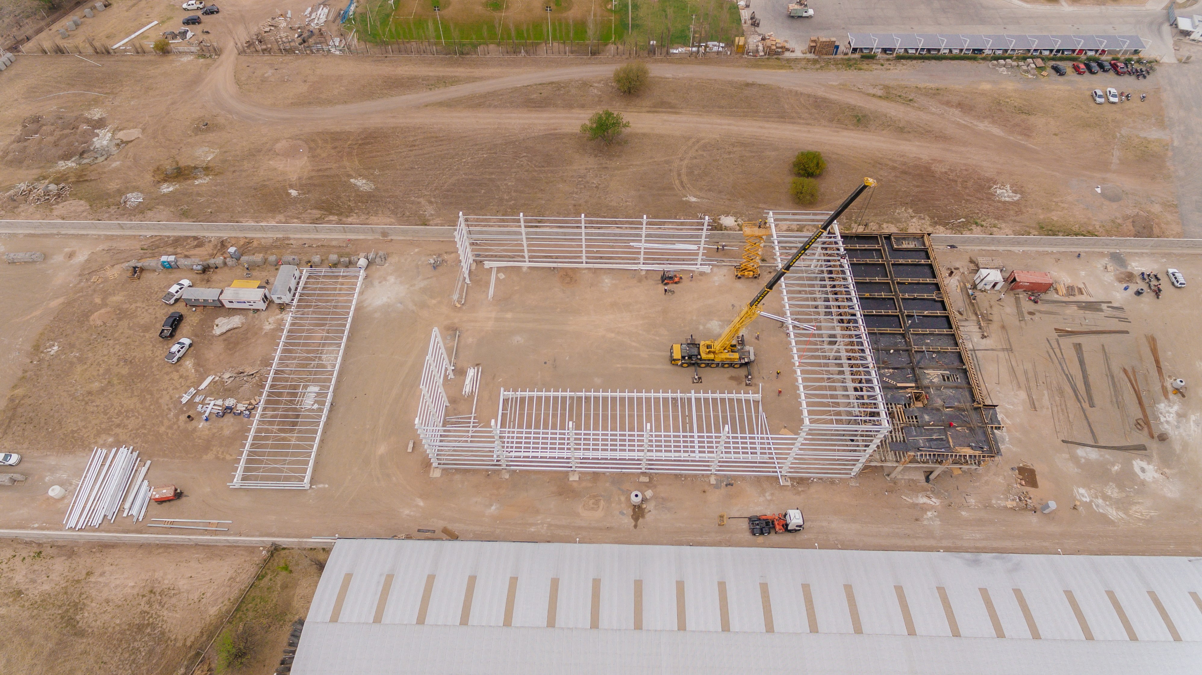 - Cubierta metálica en chapa U45 galvanizada y cerramientos laterales con paneles térmicos.